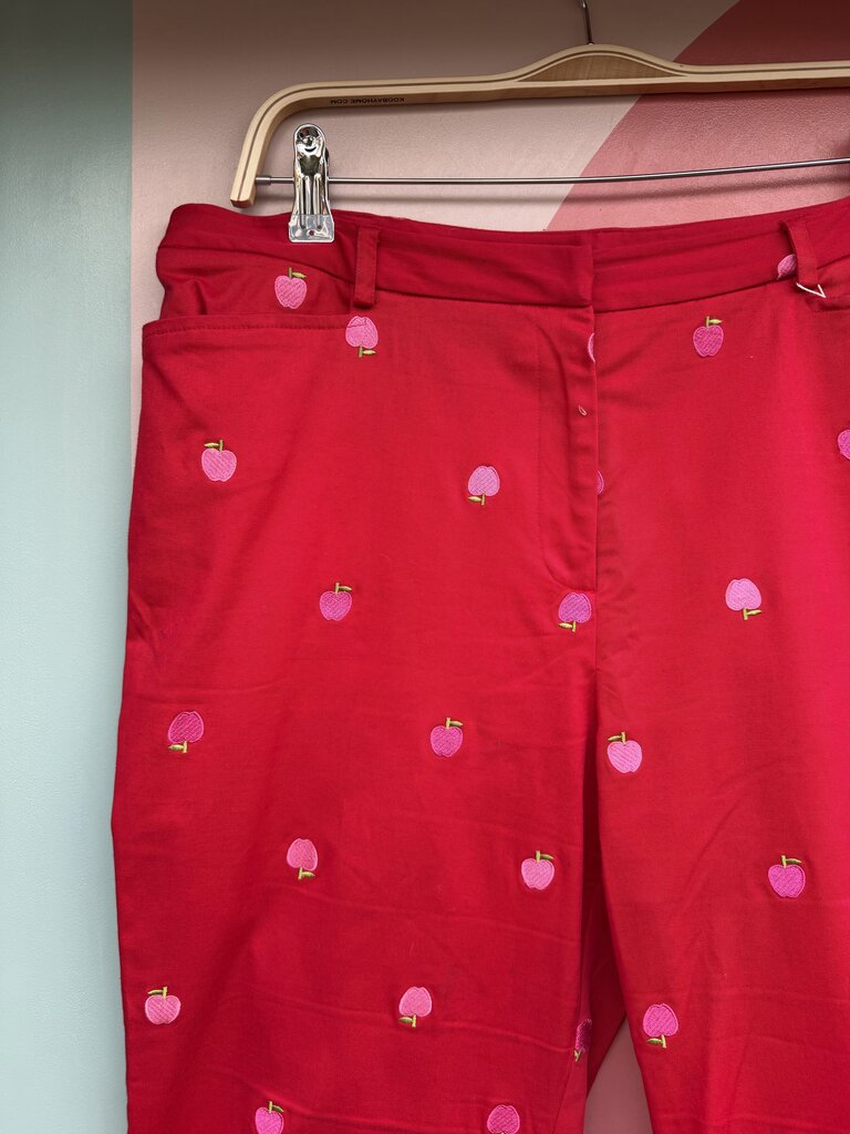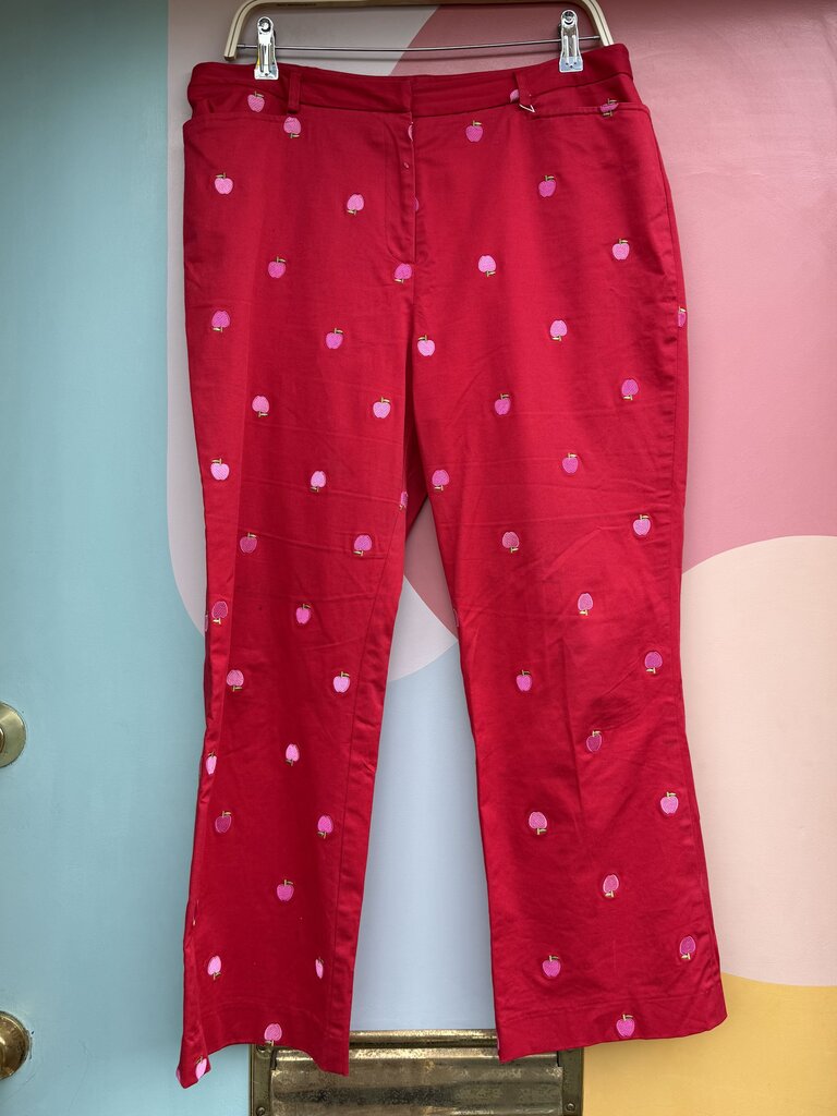 Lily Pulitzer Apple Emboired Trousers (As found, spots on L leg, seam loose on L pocket)